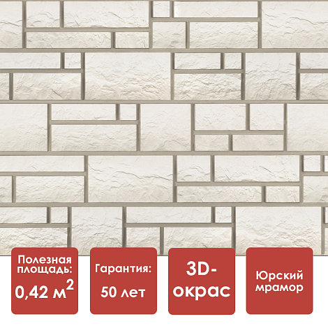 Белоснежные фасадные панели Docke BURG добавят свежести и нарядности дому. Текстура материала имитирует юрский мрамор, сочетая в себе структуру камня и четкую геометрию, а градиентное прокрашивание панелей с комбинацией различных цветовых схем нанесения краски машинным и ручным методом, делает каждую панель немножечко уникальной.