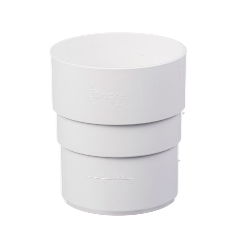 Муфта соединительная предназначена для соединения трубы с воронкой, двух труб или дыух колен. Монтаж водосточных систем Дёке производится по принципу конструктора и без использования клея – каждый элемент продублирован уплотнительными резинками.
