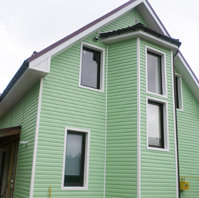 Сайдинг Дёке в цвете Киви - приятный оттенок зеленого, ближе к мятному, чем ядовито-салатовому, не утратит своей красоты минимум 7 лет - столько действует гарантия на светостойкость от производителя Дёке Экстружн. Сайдинг в цвете Киви одинаково красив как с аксессуарами в белом цвете, так и в насыщенном шоколадном, что создает большой простор для фантазии при продумывании идеального вида Вашего дома.