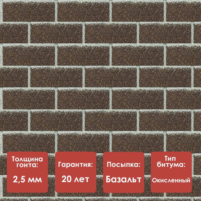 Поверхность материала покрыта каменной посыпкой из натурального базальта — без примесей шлака, что исключает появление неэстетичного блеска под солнечными лучами. Цветовое покрытие наносится методом высокотемпературного обжига, благодаря чему сохраняет насыщенность и свежесть на протяжении всего срока службы.
