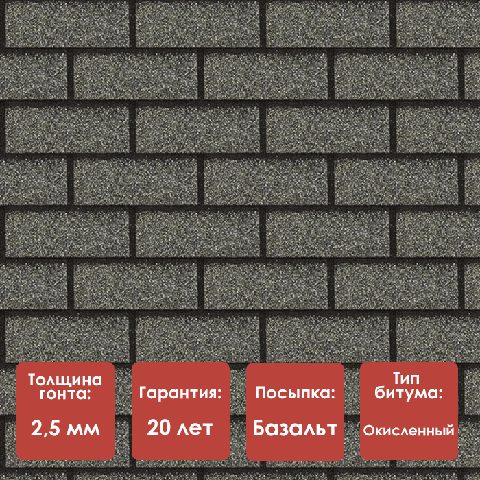 Поверхность материала покрыта каменной посыпкой из натурального базальта — без примесей шлака, что исключает появление неэстетичного блеска под солнечными лучами. Цветовое покрытие наносится методом высокотемпературного обжига, благодаря чему сохраняет насыщенность и свежесть на протяжении всего срока службы.