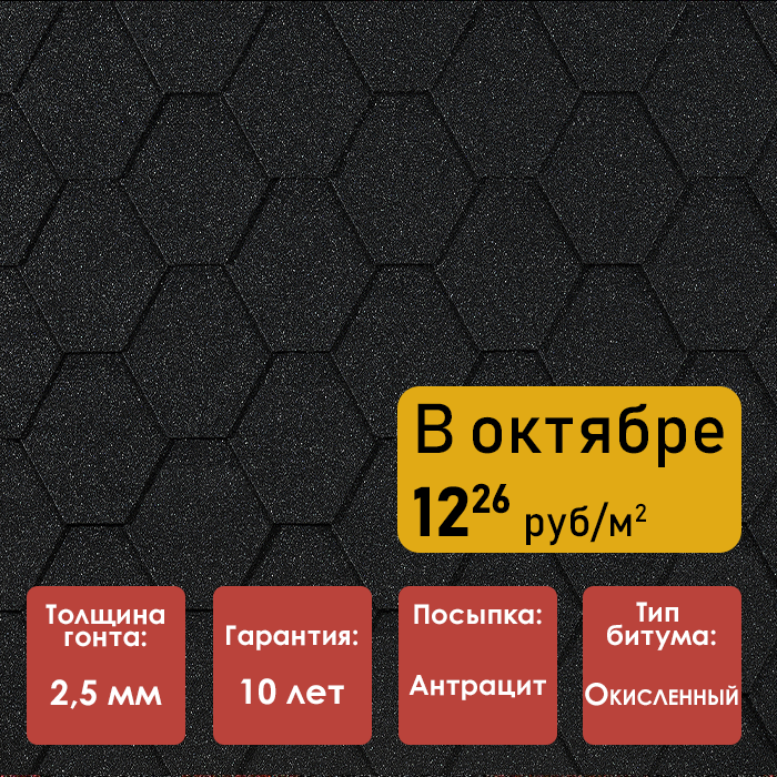 Гибкая черепица Дёке ЕВРАЗИЯ, серия ШЕСТИГРАННИК, цвет ЧЁРНЫЙ
