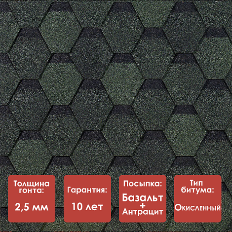 Гибкая черепица Дёке ЕВРАЗИЯ, серия ШЕСТИГРАННИК, цвет ЗЕЛЁНЫЙ
