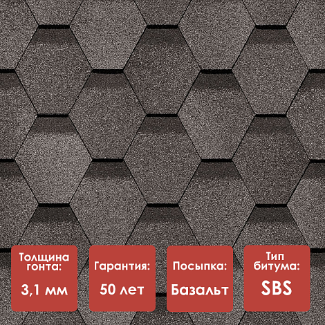 Гибкая черепица Docke PIE PREMIUM коллекция Шеффилд в цвете Шеффилд гармонично сочетает в себе серые оттенки базальтовых гранул, которые оживляют кровлю и придают ей строгость и шарм. Элементы имеют классическую шестигранную форму, что позволяет получить великолепную кровлю строго немецкого стиля.