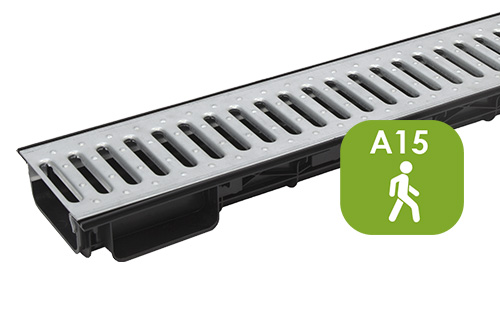 Корпус изготовлен из прочного морозостойкого пластика, устойчивого к влаге, перепадам температур и воздействию окружающей среды. В комплект входит стальная решетка, рассчитанная на пешеходные нагрузки, что обеспечивает дополнительную надежность и безопасность эксплуатации системы водоотведения.